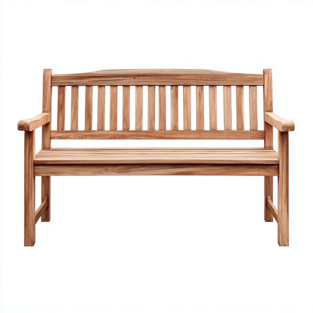 Banc de jardin avec accoudoirs et dossier, structure intégrale brun clair