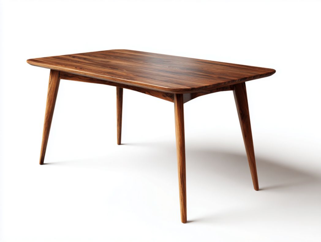 Table à manger rectangulaire brun foncé en bois massif, pieds inclinés